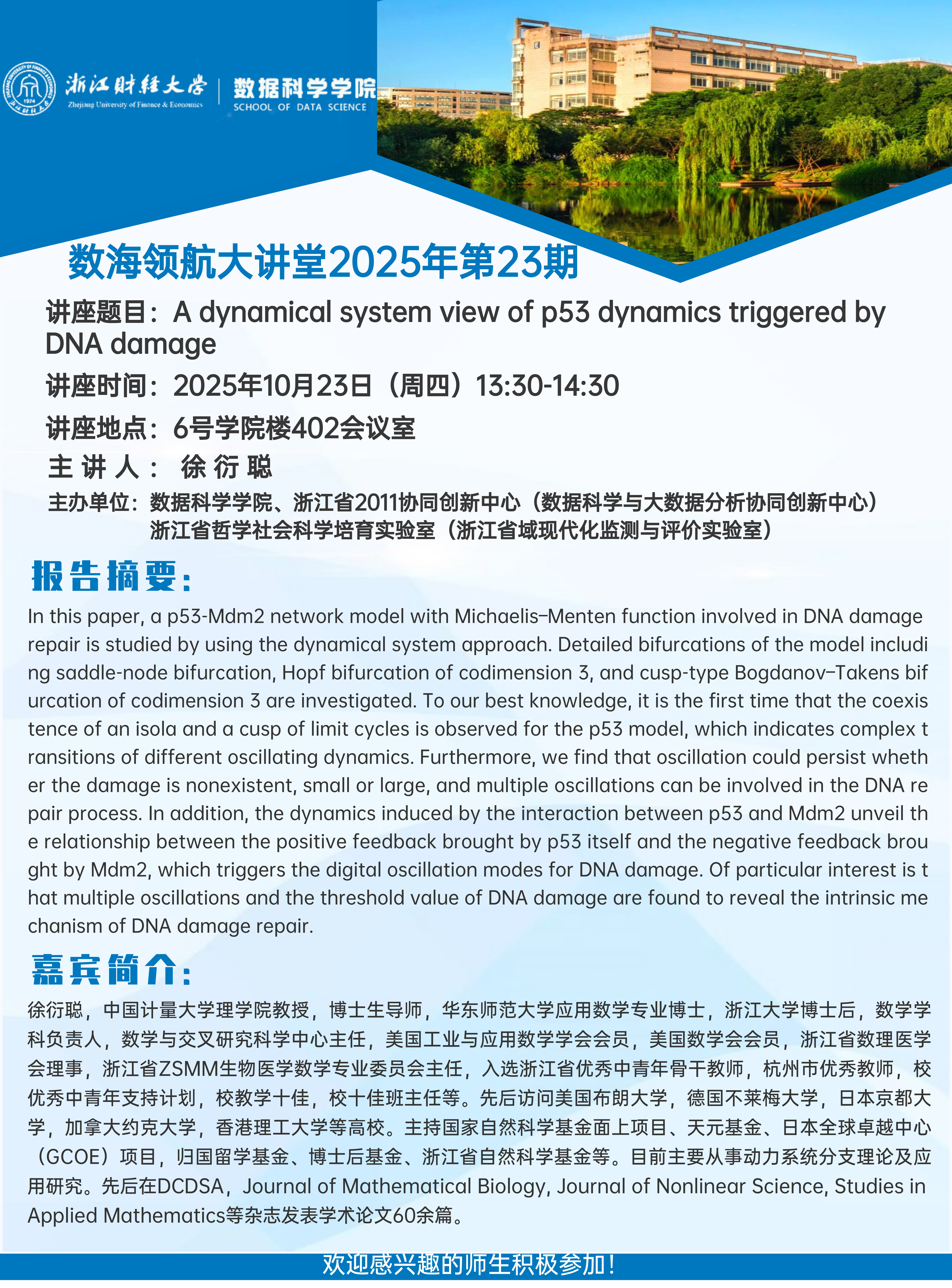 上一条:数海领航大讲堂2025年第24期——杭州电子科技大学孙伟刚教授 下一条:Sparse-dense flight copy-based interactive mechanism toairline integrated recovery with cruise speed control——数海领航大讲堂2025年第22期开讲