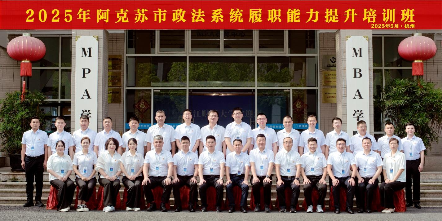 承办的2025年阿克苏市政法系统履职能力提升培训班在文华校区成功举办。阿克苏市委政法委常务副书记兰文浩,浙江财经大学继续教育学院副院长易顺出席开班仪式,阿克苏市政法系统干部30人参加培训并顺利结业。