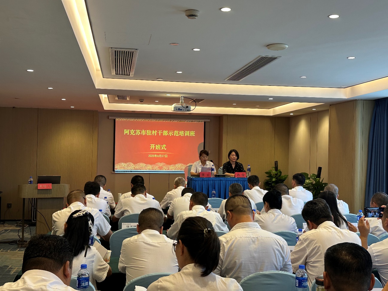 承办的阿克苏市驻村干部示范培训班在杭州成功举办。阿克苏市驻村干部40人参加培训并顺利结业。阿克苏市人大常委会办公室主任、一级主任科员张云做开班动员讲话,浙江财经大学文华管委会党支部书记、文华管委会办公室主任孙莹向培训班学员致开班辞。