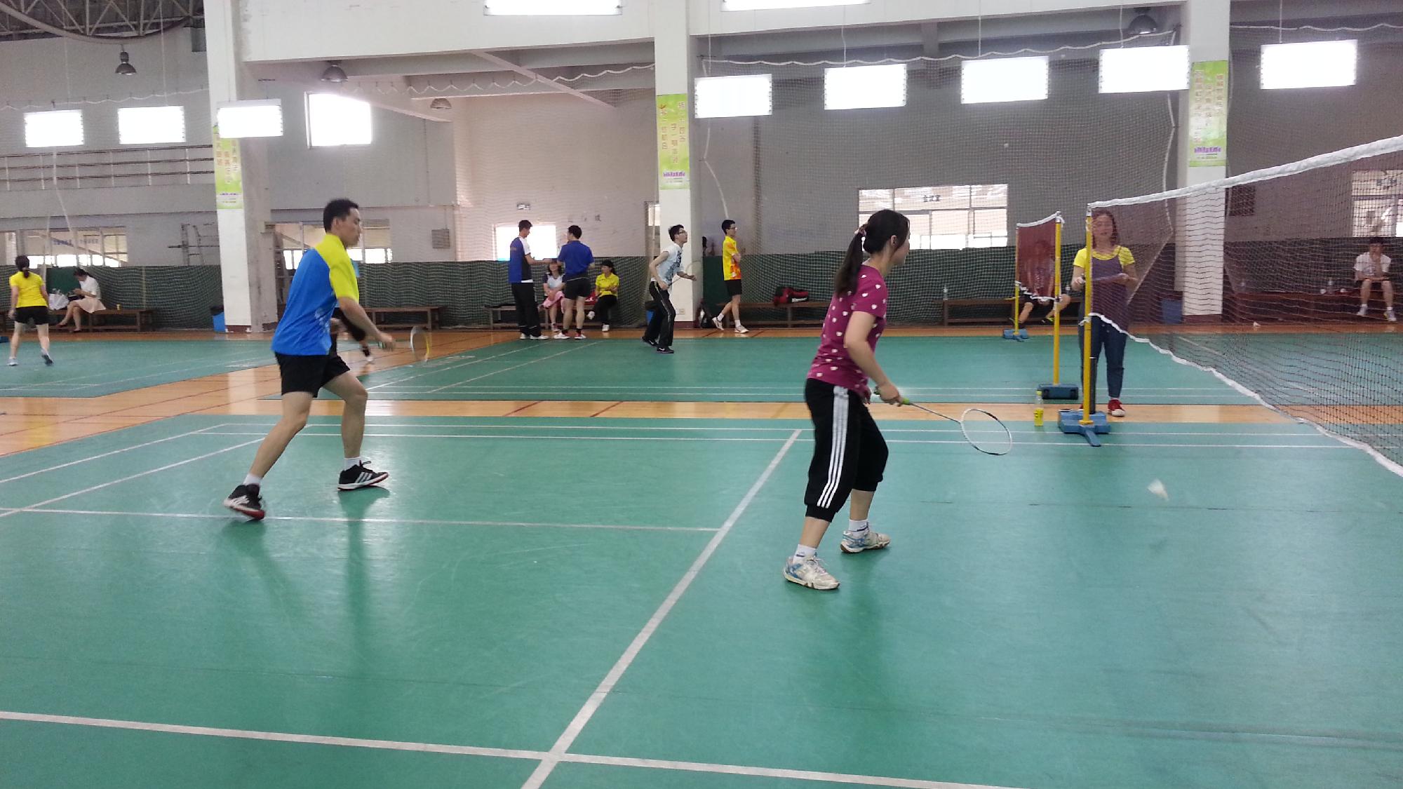 当天下午进行的是教工45岁以下混双比赛,参赛的为A、B、C、D四个分小组晋级的前两名,比赛方法为21分的交叉淘汰赛。首轮与东方队的比赛没有太大的悬念,最终以21:11赢下比赛,晋级4强。第二轮争夺前两名的比赛中,遇到冠军队刘剑锋、沈腊梅组合,比赛打的相当艰难,技战术方面略输一筹,最终失利争夺3-4名。